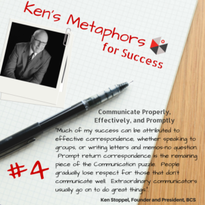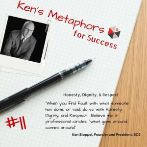 Our founder and President, Ken Stoppel, shares his experiences and advice. Here’s Ken’s Metaphor for Success #11: If I could choose three words that epitomize